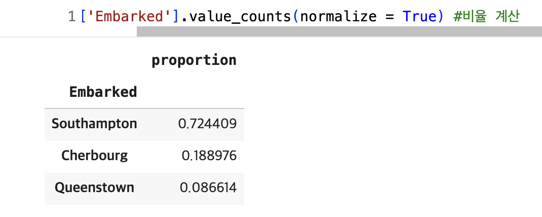 범주 별로 비율을 구해서 반환하는 것을 확인할 수 있습니다.