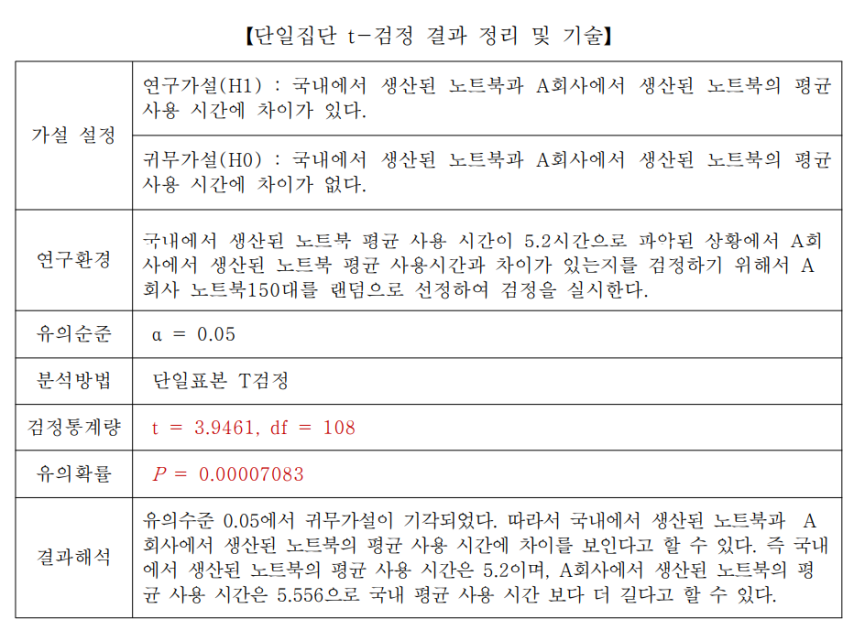 - 따라서 귀무가설을 기각하지 않고 채택한다.