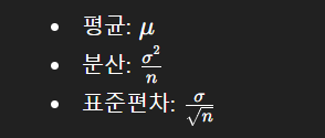 → 표본평균들의 평균 (기댓값)