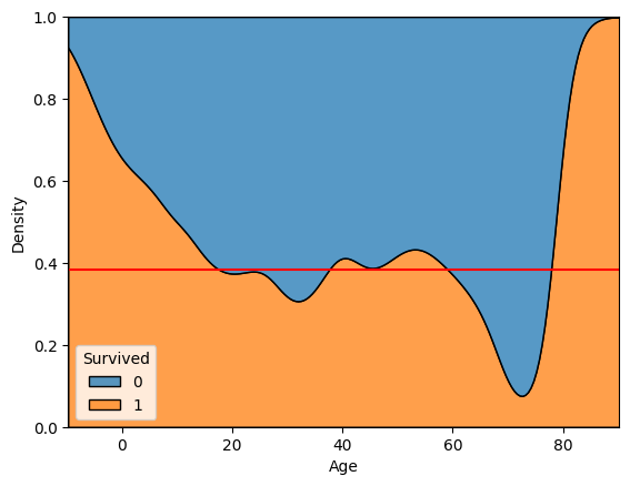 - y축: Density (각 나이 구간에서의 생존/사망 비율 합 = 1)