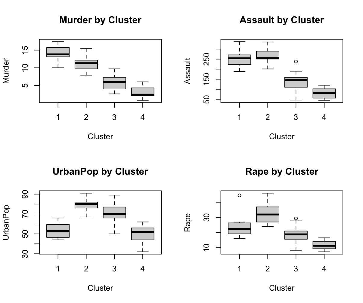 main="UrbanPop by Cluster", xlab="Cluster", ylab="UrbanPop")
