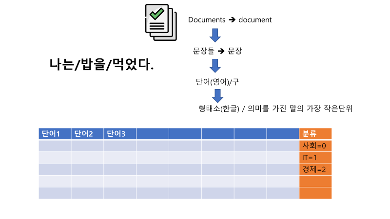 텍스트 분류 : 문서가 트정 분류 또는 카테고리에 속하는 것을 예측하는 기법 통칭