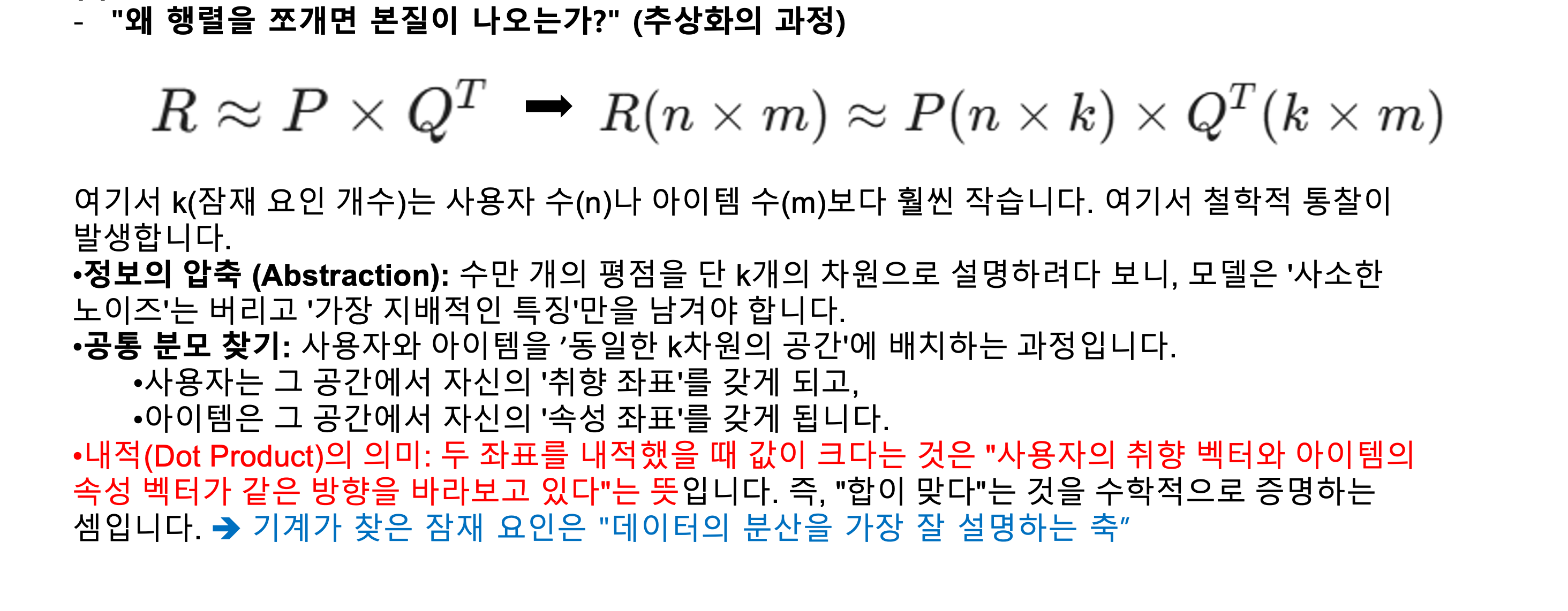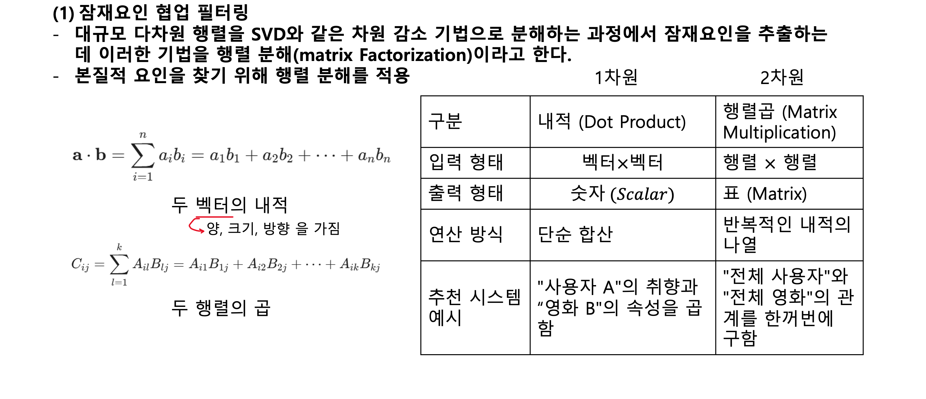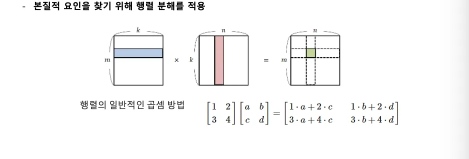 - (mxk)*(kxn)⇒ mxn : 두개가 행렬의 가장 근본적인 분해 요소