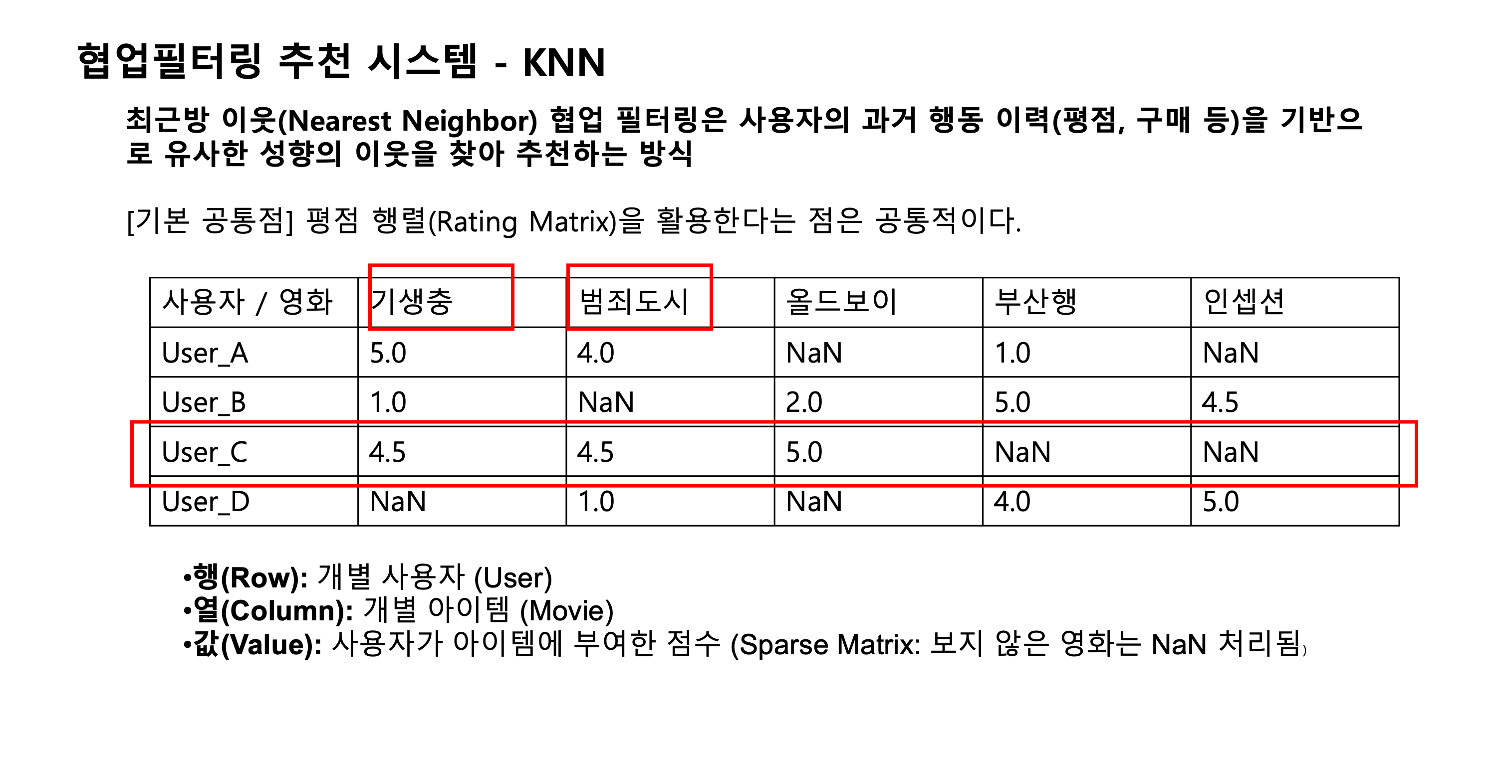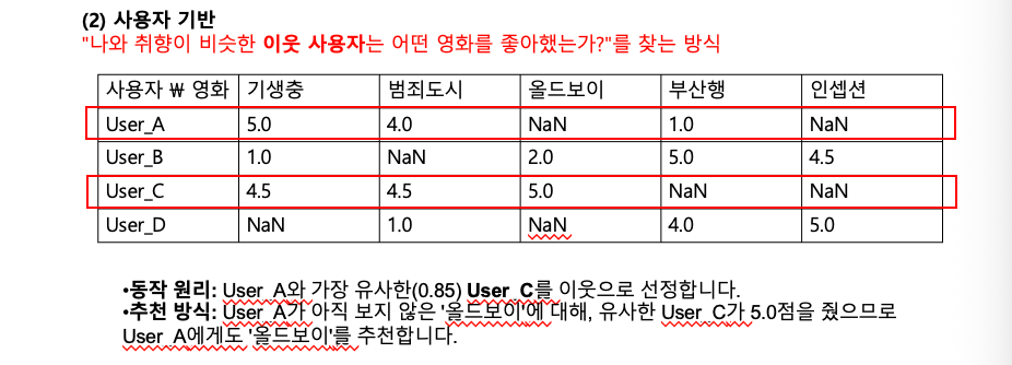 - 장점 : nan 값이 있어도 추천 가능
