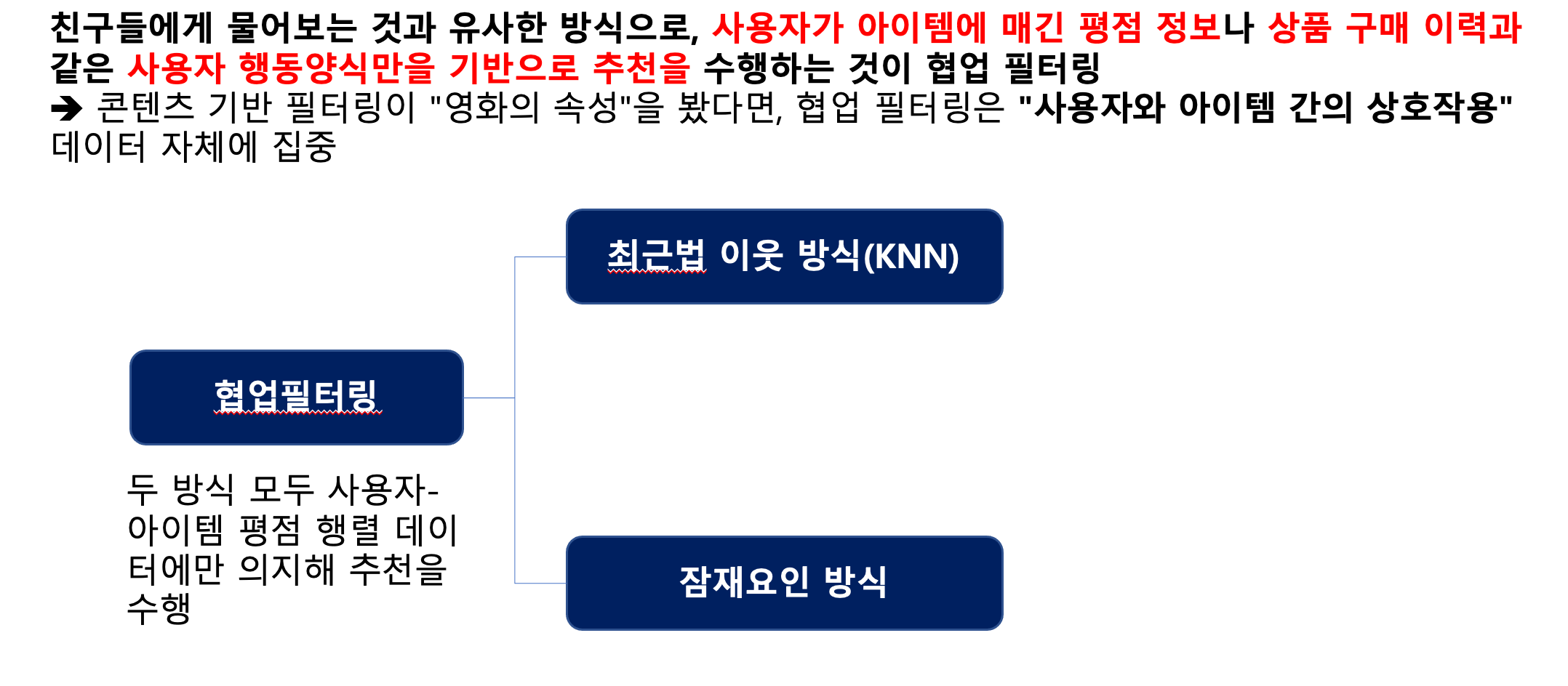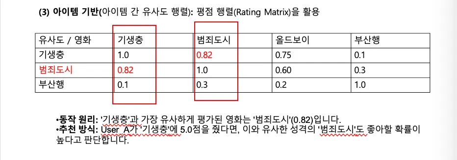 2. 협업 필터링 (사용자들의 행동 패턴을 기반으로) ⇒ 아이템에 대한 특성 정보 몰라도 됨
