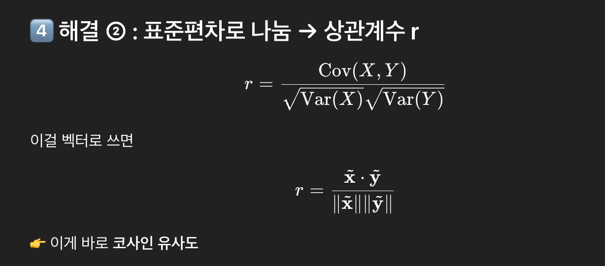 - 평균 제거 ( 중심화) → 그 벡터로 코사인 계산